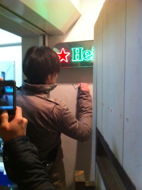 どの店に行ってもサインを頼まれてお店の壁にサインの落書きっ